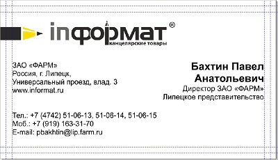То есть если требуется разработать макет визитки размером 90 х 50 мм, то его размер должен быть 94 х 54 мм, а важных элементов не должно быть на расстоянии 4 мм от краёв.
